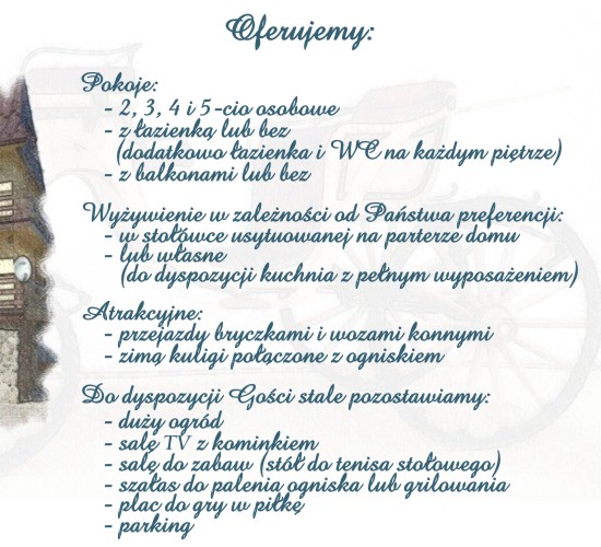 - lub własne (do dyspozycji kuchnia z pełnym wyposażeniem)